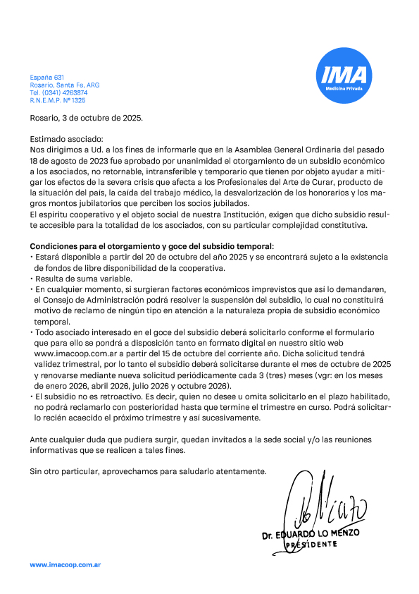 (*) Este formulario de solicitud de auxilio económico para el período noviembre 2025-agosto 2026 se encuentra disponible para los señores asociados durante el mes de octubre 2025, vencido el cual caduca de pleno derecho el ejercicio de la facultad de solicitarlo por el trimestre de referencia. Podrá solicitarlo el próximo trimestre si continuare en vigencia. Sujeto a la existencia de fondos de libre disponibilidad. La suspensión unilateral si surgieran factores económicos imprevistos que así lo demandaren, no constituirá motivo de reclamo de ningún tipo en atención a la naturaleza propia de auxilio económico temporal. La solicitud importa la aceptación de todos los términos y condiciones.